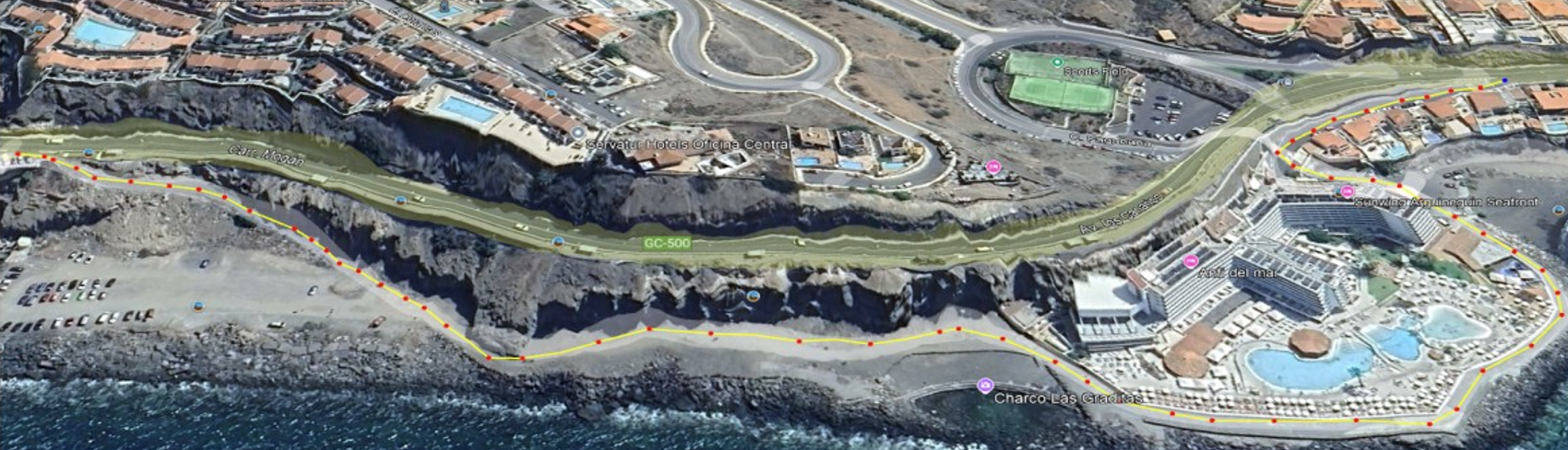 El Excmo. Ayuntamiento de Mogán adjudica a INFRAESTRUCTURAS DEPORTIVAS CANARIAS SL las obras de “Acondicionamiento Peatonal del Paseo Marítimo desde Arguineguín-Patalavaca (GC-500)”. El proyecto redactado por Dña. Ana Victoria Gil Molina, tiene como finalidad intervenir en el paseo peatonal que conecta Arguineguín con Patalavaca y se encuentra anexo a la GC-500 desde el PK 29+030 al PK 29+780. Actualmente, el paseo cuenta con una barandilla de acero galvanizado colocada como barrera al mar y como elemento separador entre la GC-500 y el paseo se encuentra un muro de gaviones de 45 cm de alto y 27 cm de ancho, colocado sobre una correa de hormigón. Con el paso del tiempo, se ha ido deteriorando el estado del muro y de la barandilla debido a la proximidad del mar. El proyecto que se pretende realizar consta de dos acciones:
